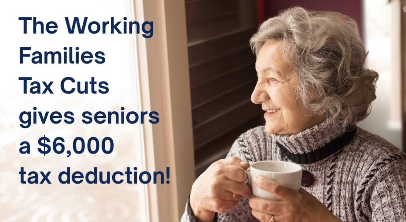 It's tax time. Thanks to the Working Families Tax Cuts, Republicans secured a new $6,000 tax deduction for Americans 65 and older, in addition to the extra standard deduction they already receive under current law.