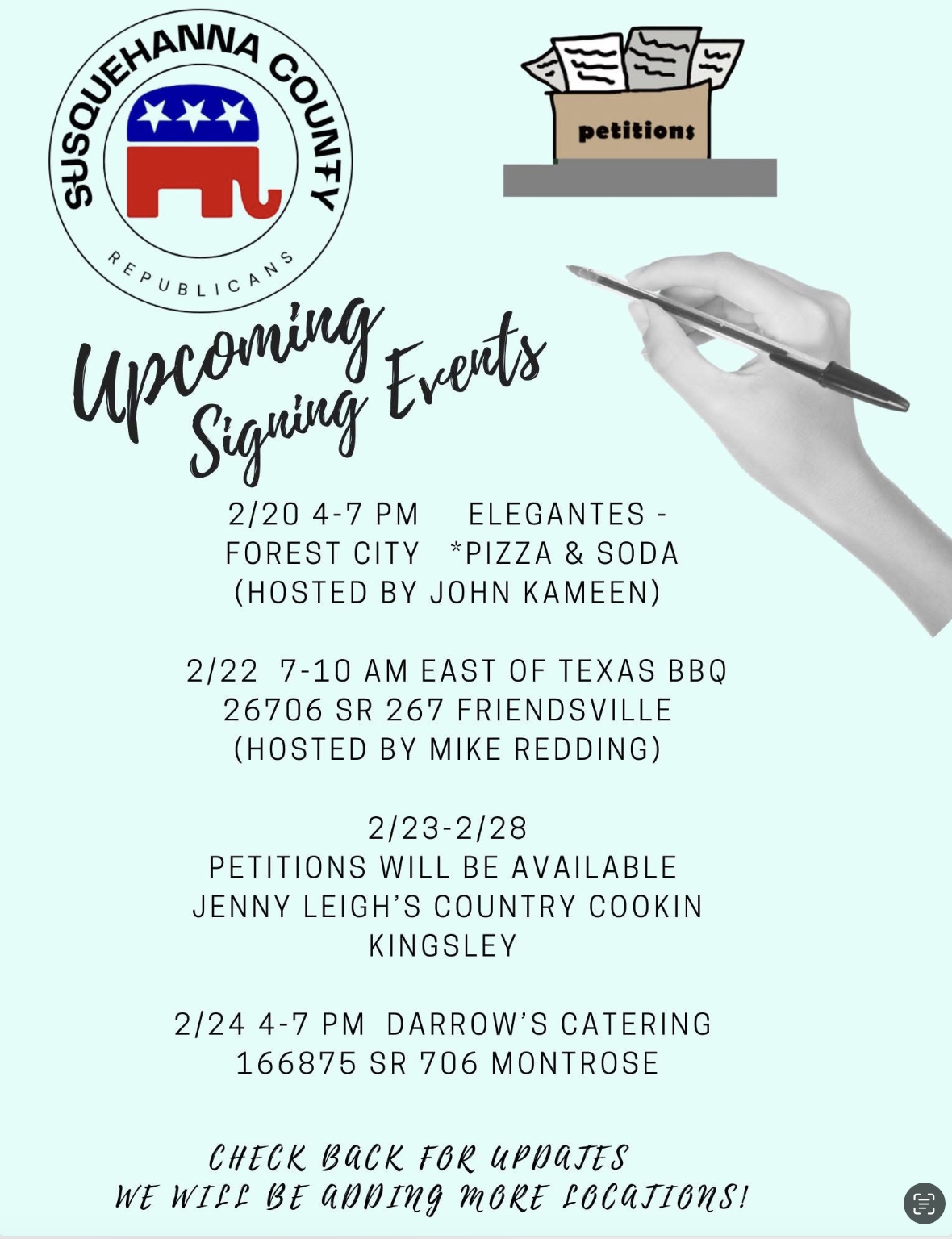 Had a great stop in Montour County last evening for the Republican Committee’s petition signing event. Always a pleasure to see Chairman Donald Kuziak, State Committeeman Mike Kuziak, Representative Michael Stender, and the many dedicated committee members who are working hard to ensure our candidates secure their place on the ballot and continue advancing Republican priorities across Montour County.