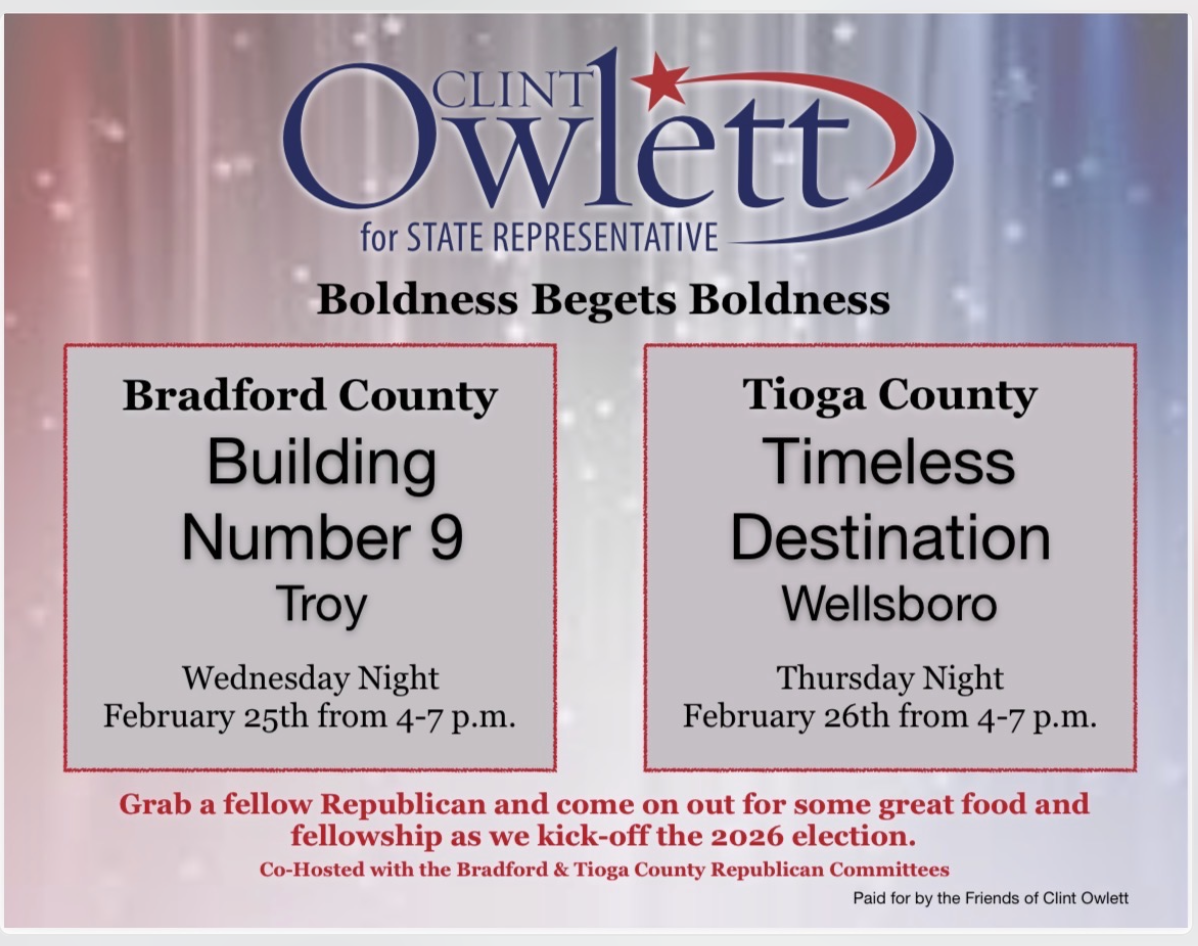 Thank you to Chairman Dick Harris and the entire Bradford County Republican Committee for hosting a successful evening and for your continued commitment to advancing conservative values across the county and beyond.