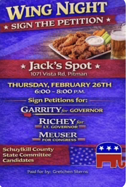 On Tuesday, we had a great event at the Blue Bird Inn in Lebanon County to officially launch petition season.