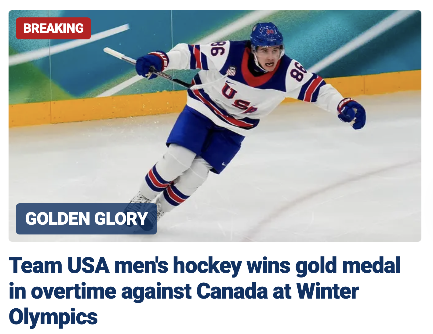 Congratulations to Team USA Men’s Hockey on an incredible Olympic Gold Medal victory. This team showed exactly what American grit, discipline, and determination look like on the world stage.