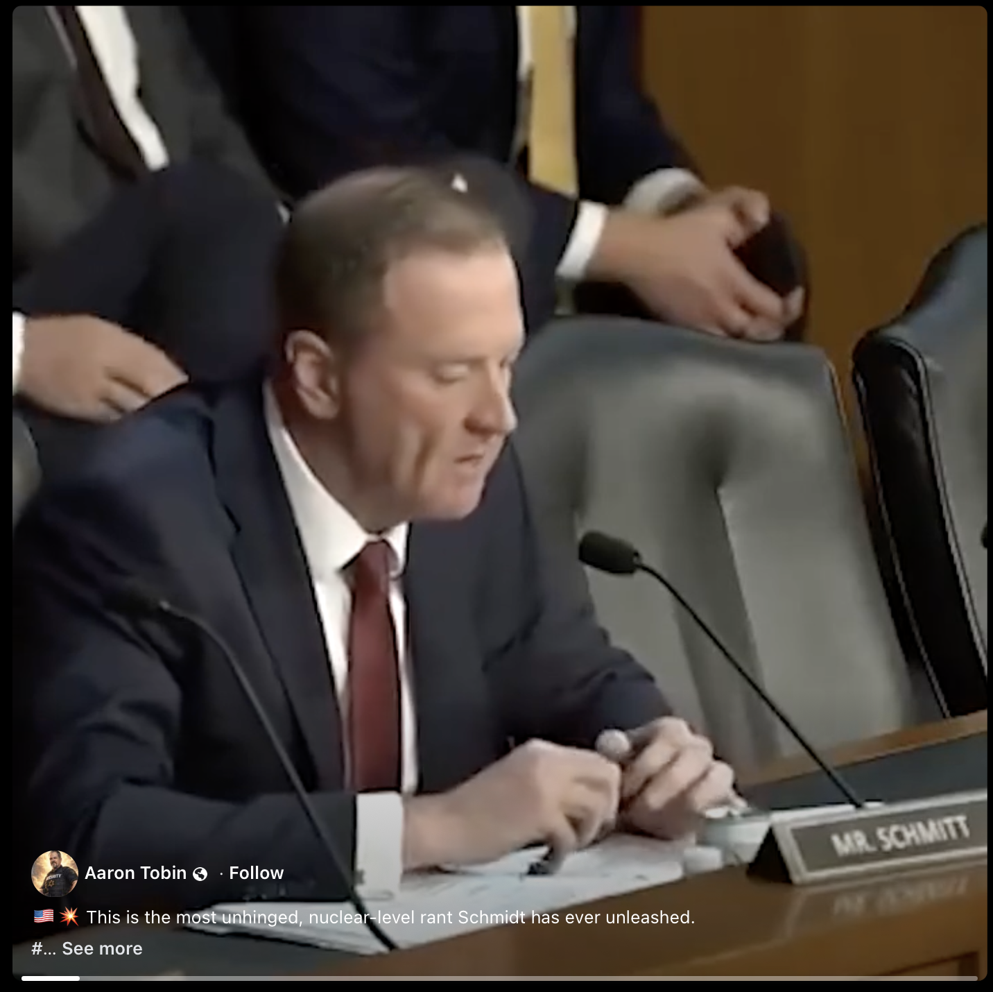 I want to share the video below of Senator Eric Schmitt (R-MO) at a recent hearing breaking down the recent history of just how far the Democrats are willing to go to block President Trump and the America First Agenda. The Democrats' weaponization of government against President Trump has been unprecedented. Click here or below to watch the Senator's remarks.